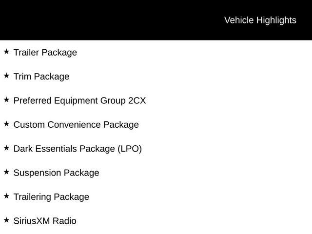 The Custom Convenience Package, Dark Essentials Package, Preferred Equipment Group 2CX, Suspension Package, and Trailering Package further enhance the Silverado's versatility and capability, ensuring you're ready for any adventure.